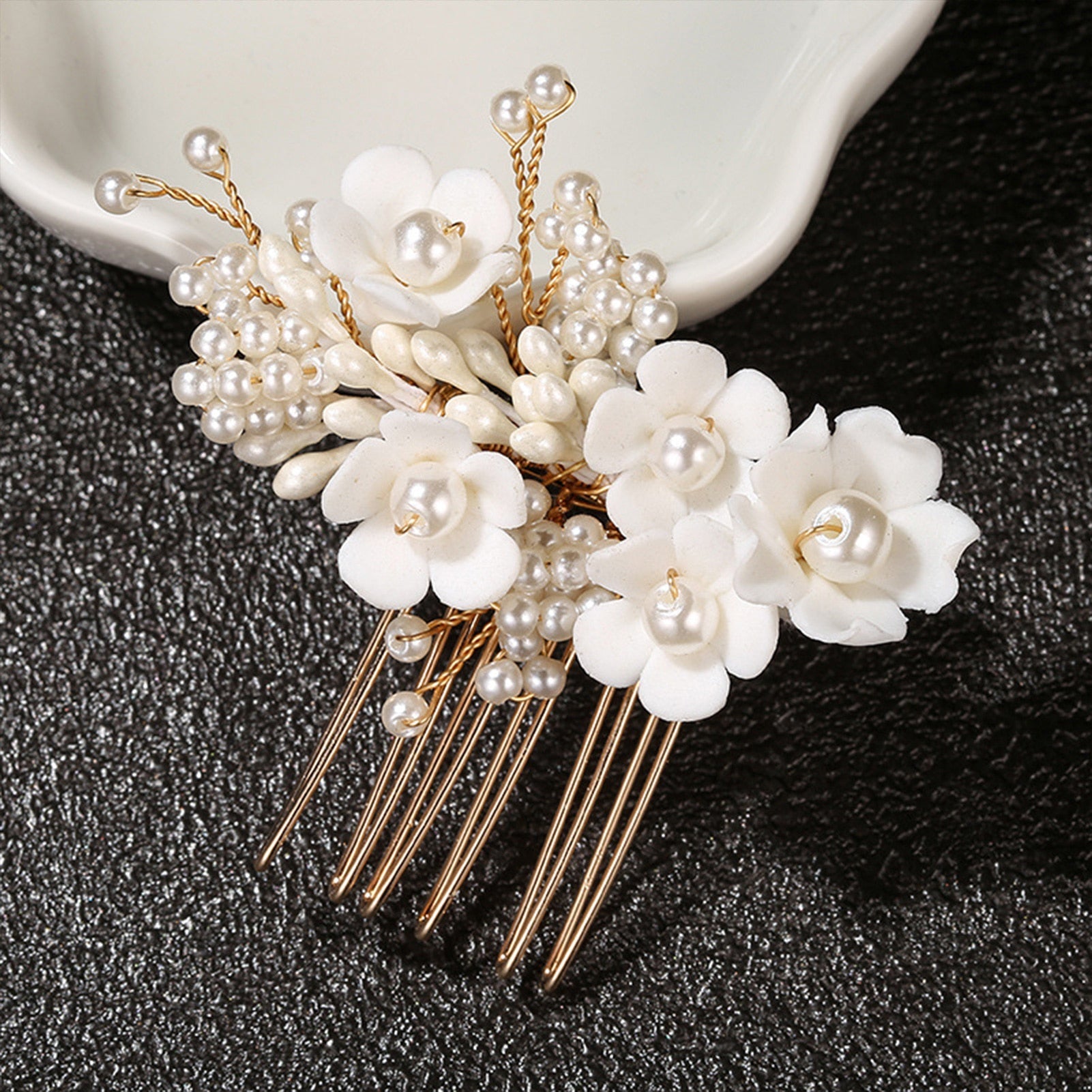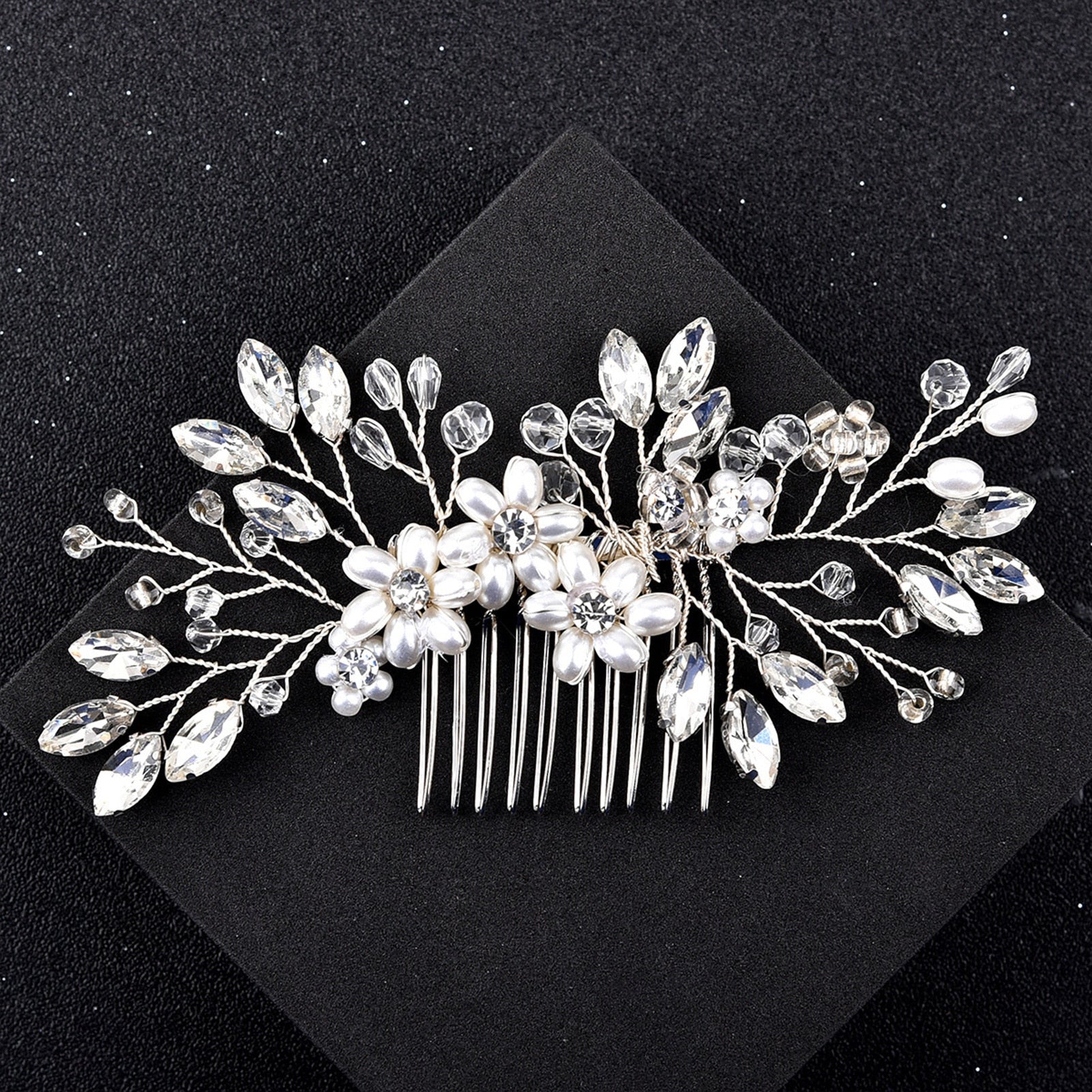 Silver Flower Hair Comb Jewellery Girls Handmade Pearl Hair Pin Hair Comb Bridal Tiaras Wedding Hair Accessory Jewellery